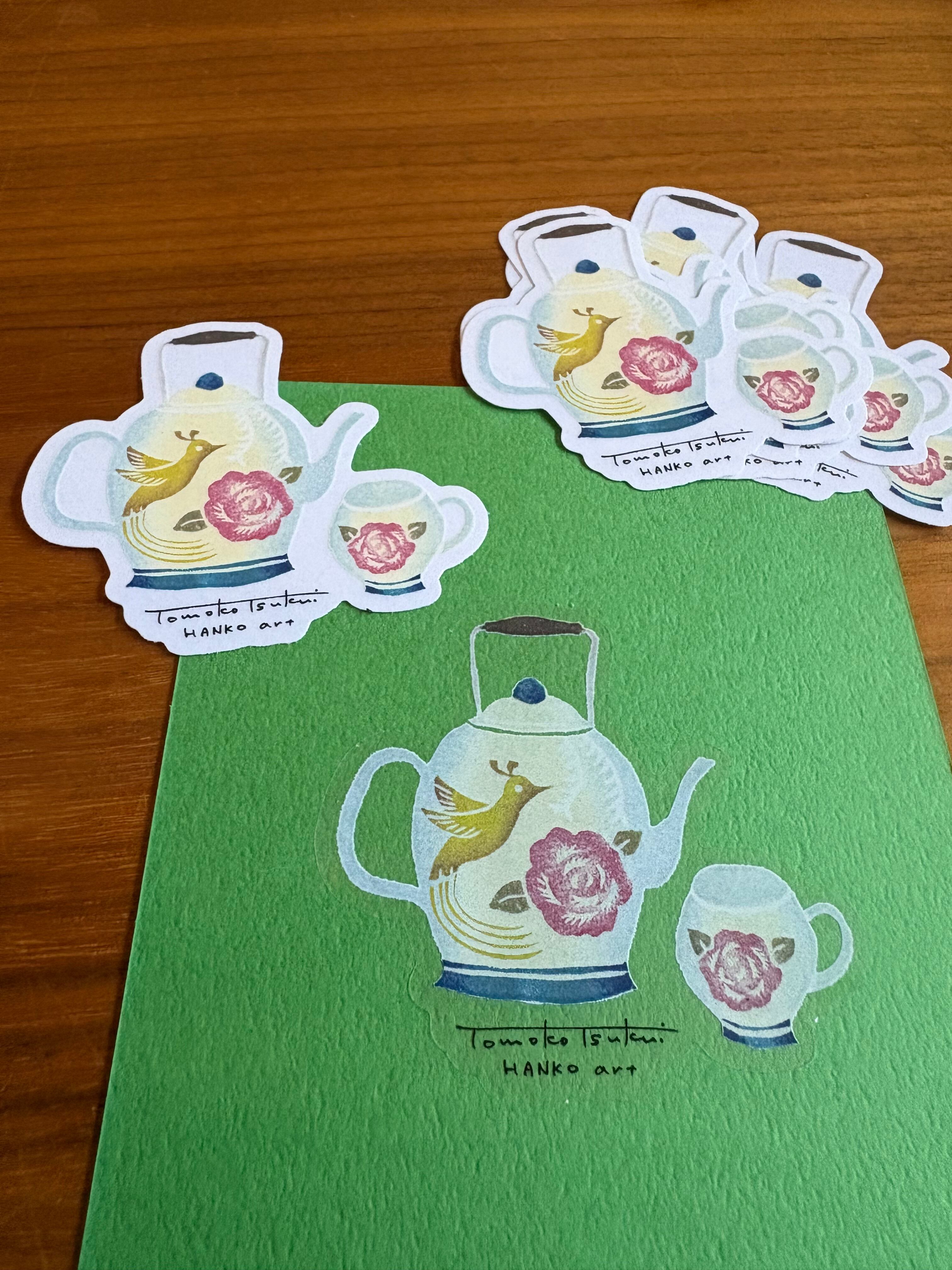 津久井智子の消しゴム版画から、人気の絵柄をプリントして、透明ステッカーを作りました!
