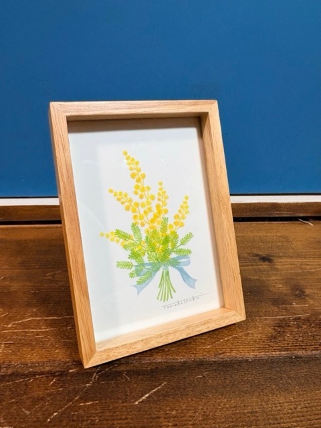 ミニ額手刷り版画作品「ミモザの花束」/2026年2月限定