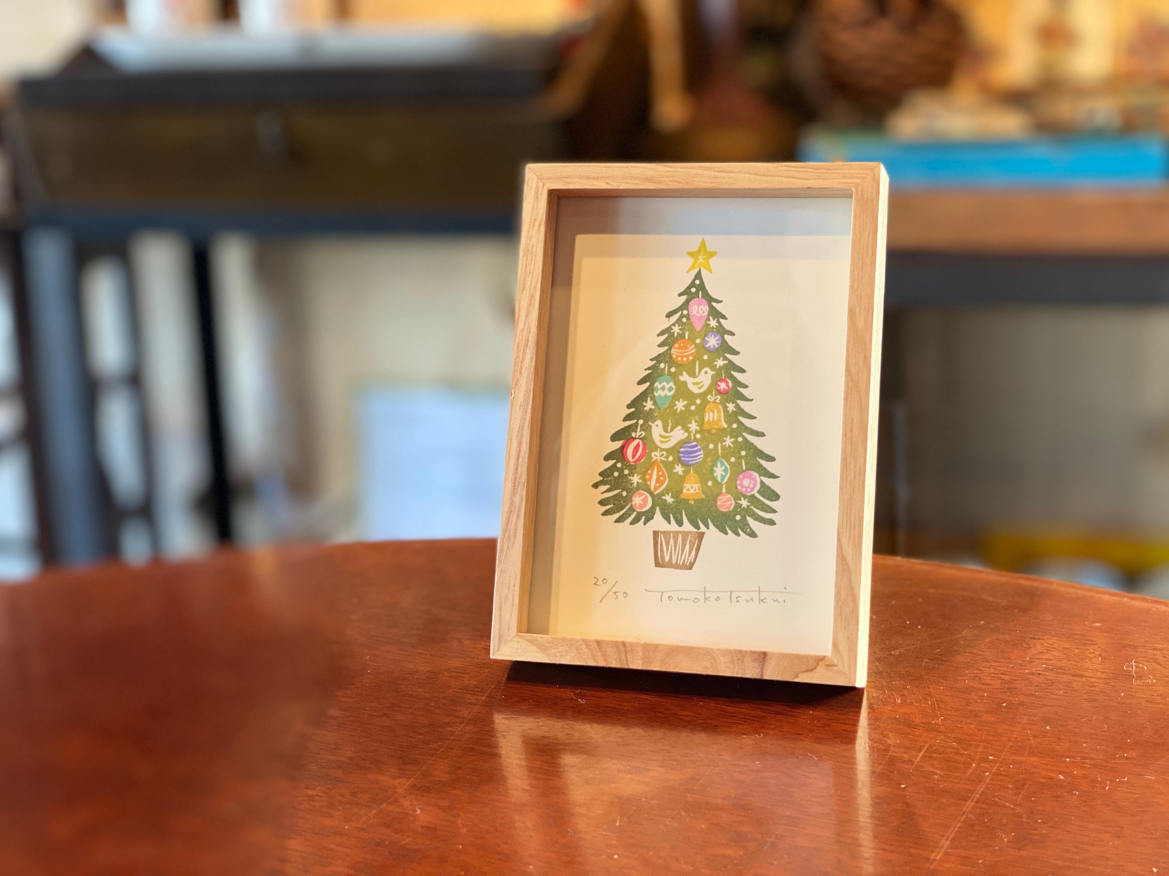 ミニ額手刷り版画作品「クリスマスツリー」/12月限定
