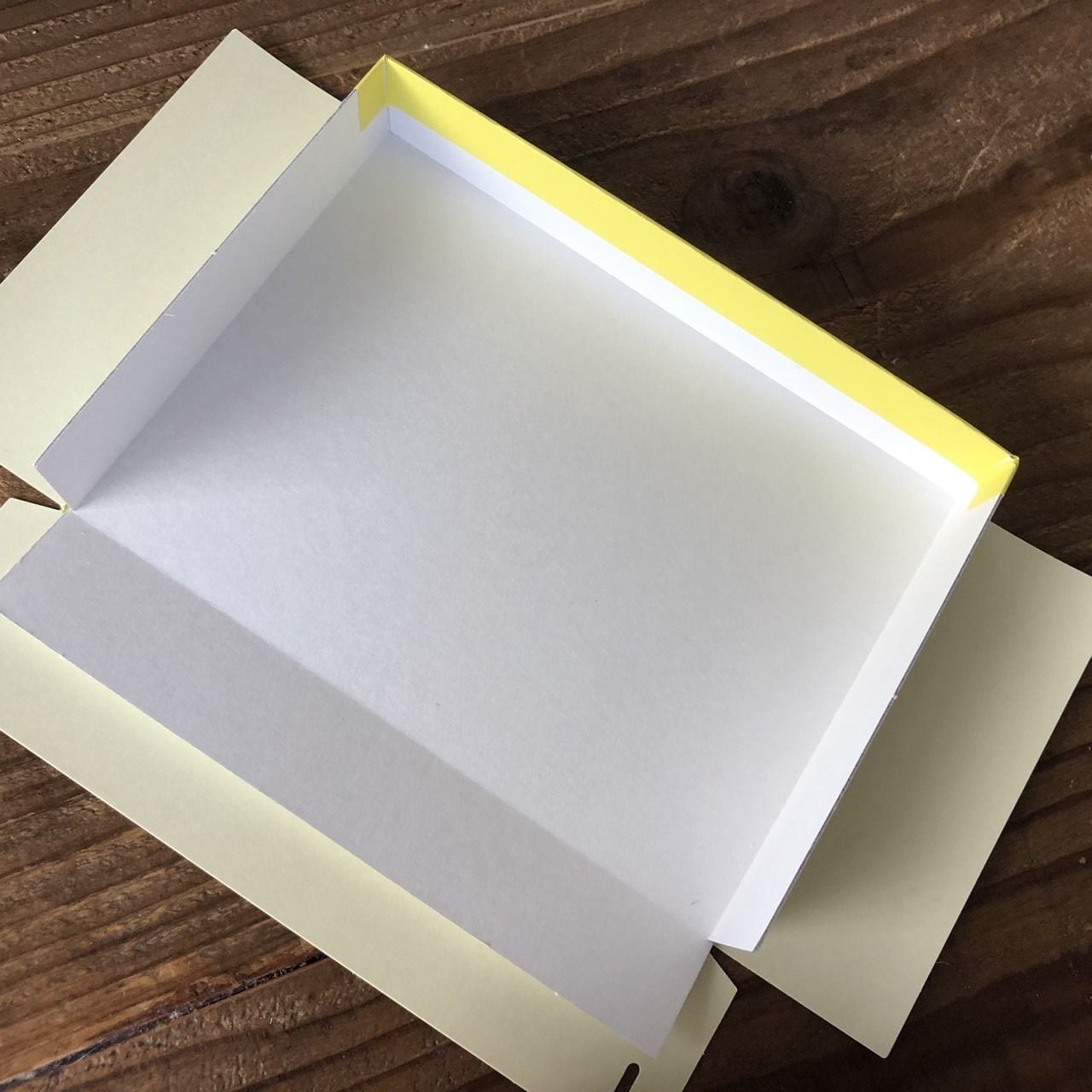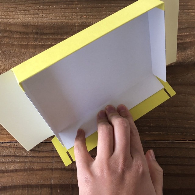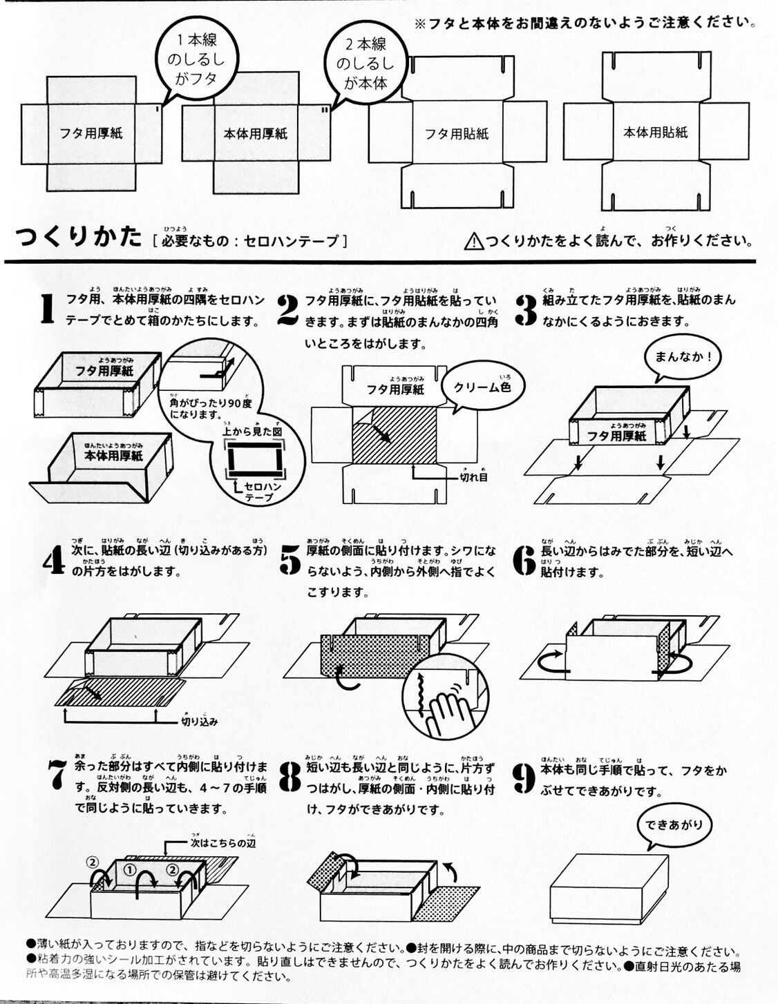 Press the eraser stamp on the sticker processed paper to attach the pattern, then stick it to the thick paper that is the core material of the box in the right order.